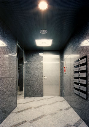 江戸三大祭りの一つである神田祭りの日には、ビルの前を大神輿が練り歩きます。 |